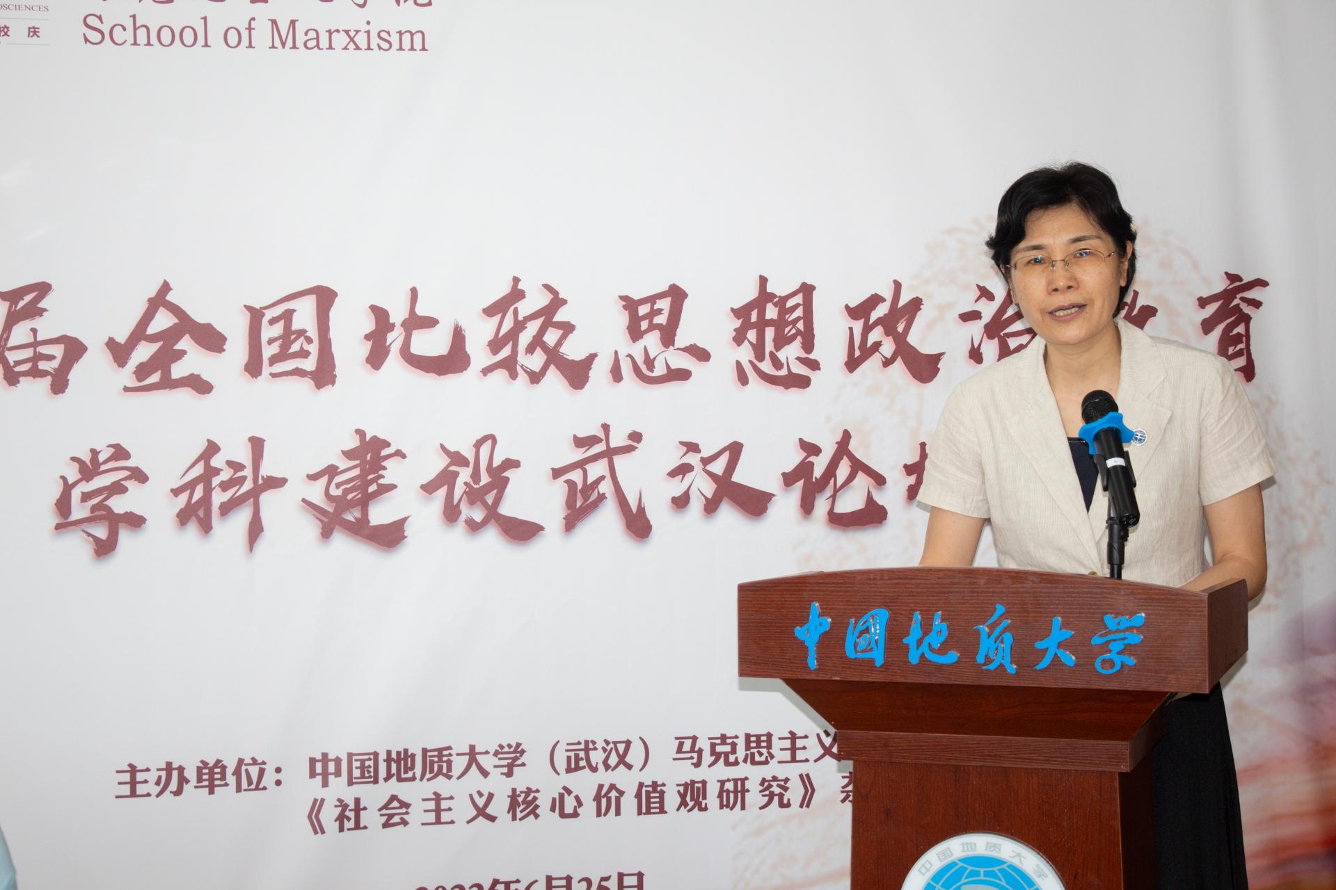 黄晓玫介绍了我校的历史沿革及马克思主义理论学科建设的基本情况,指出在新形势新任务下,比较思想政治教育学科建设对于助推新时代思想政治教育发展具有重要意义,契合习近平总书记在哲学社会科学工作座谈会上的讲话精神。她希望,大家在这次论坛交流中,能够形成更多深刻学术见解和观点,共同为深化比较思想政治教育理论研究,推动比较思想政治教育学科建设,促进思想政治教育实践创新,作出新贡献。