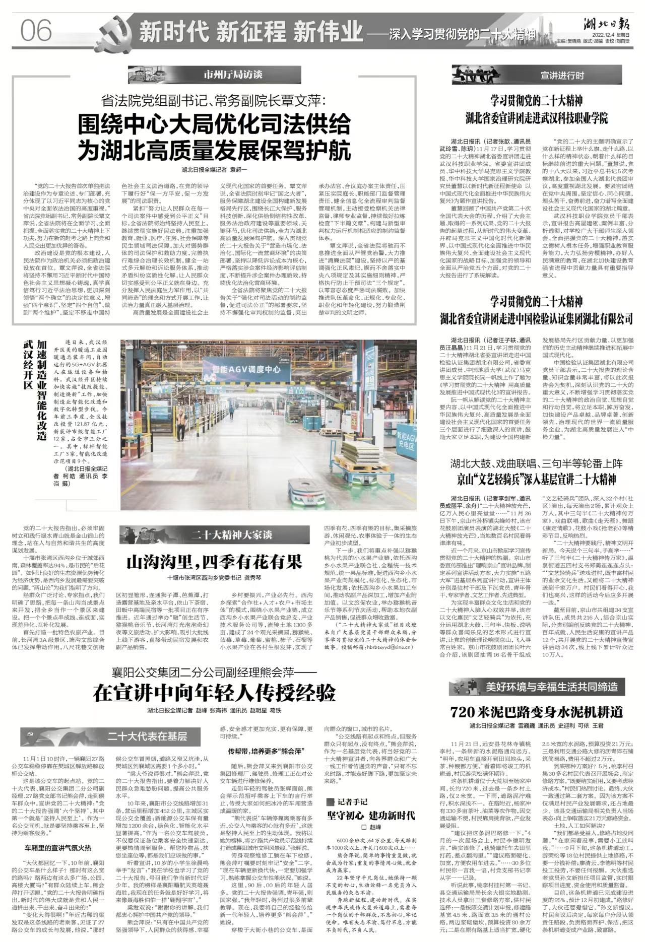 湖北日报讯 (记者汪子轶、通讯员汪晶晶)11月21日,学习贯彻党的二十大精神湖北省委宣讲团走进中国检验认证集团湖北有限公司,省委宣讲团成员、bat365在线中国官网登录入口(武汉)bat365在线中国官网登录入口院长阮一帆线上作了题为《学习贯彻党的二十大精神 用高质量发展推进中国式现代化》的宣讲报告。