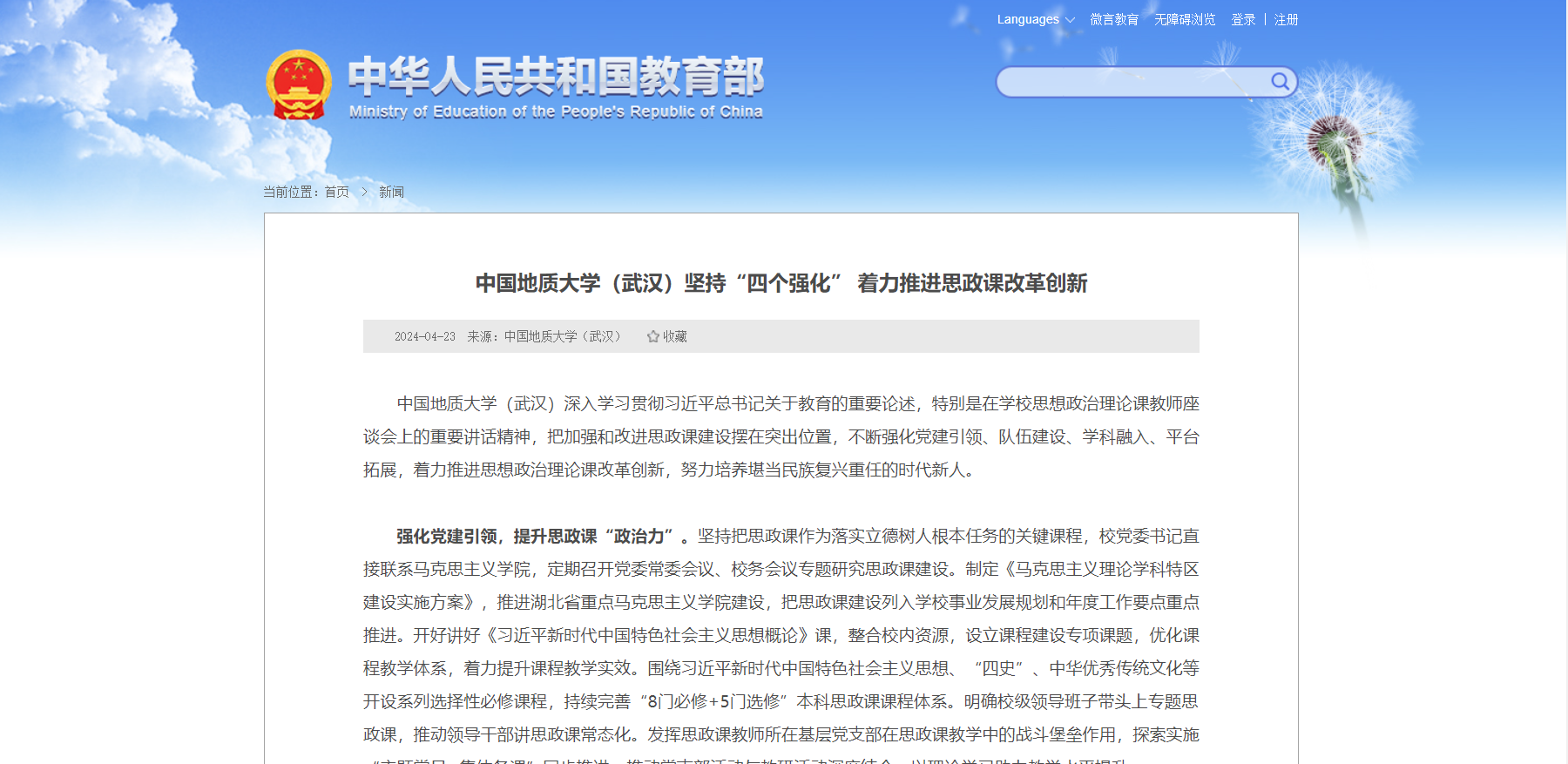 强化学科融入,提升思政课“品牌力”。发挥学校学科专业特色优势,聚焦领土、领海、领空等12个领域,打造“国土安全”品牌思政课。集合bat365在线中国官网登录入口、地球科学学院、资源学院等师资力量,组建“国土安全”教学团队,通过多种教学形式,引领学生增强爱国意识、安全意识,强化维护国家安全的责任担当。创建沉浸式国土安全虚拟仿真实验课,让学生真实感受历史,认识国土安全的重大意义。“国土安全品牌思政课信息化建设”获批全国高校数字思政精品项目(第二批)。充分发挥校本资源在思政课建设中的独特优势,将“艰苦朴素、求真务实”的校训、南迁办学精神、攀登精神以及涌现的杰出人物、事迹等,有机融入概论课教学。联合10余家单位创建大中小学思政课一体化共同体,建设“建党精神”(红)、“生态文明”(绿)、“国土安全”(蓝)三个模块,实现“红色中国—美丽中国—平安中国”现状展示和价值引领。开展“伟大建党精神一体化融入大中小学思政课的理路”集体备课,促进思政课教师共学共研、互学互鉴。开展逸夫博物馆生态文明实践研学活动和“长江流域生态文明”大中小学思政课一体化共同体专项社会调查,强化大中小学生对“美丽中国”和“两山论”价值认同。组织开展“总体国家安全观”共同体教学展示活动,设计制作大中小学思政课一体化示范教学资源,获评湖北省大中小学思政课一体化共同体教学展示活动特等奖。
